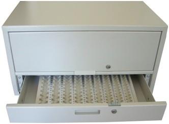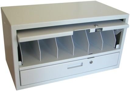 W dolnej części fasownicy znajduje się wysuwana szuflada, z rafką na bilon, również zamykana na klucz.